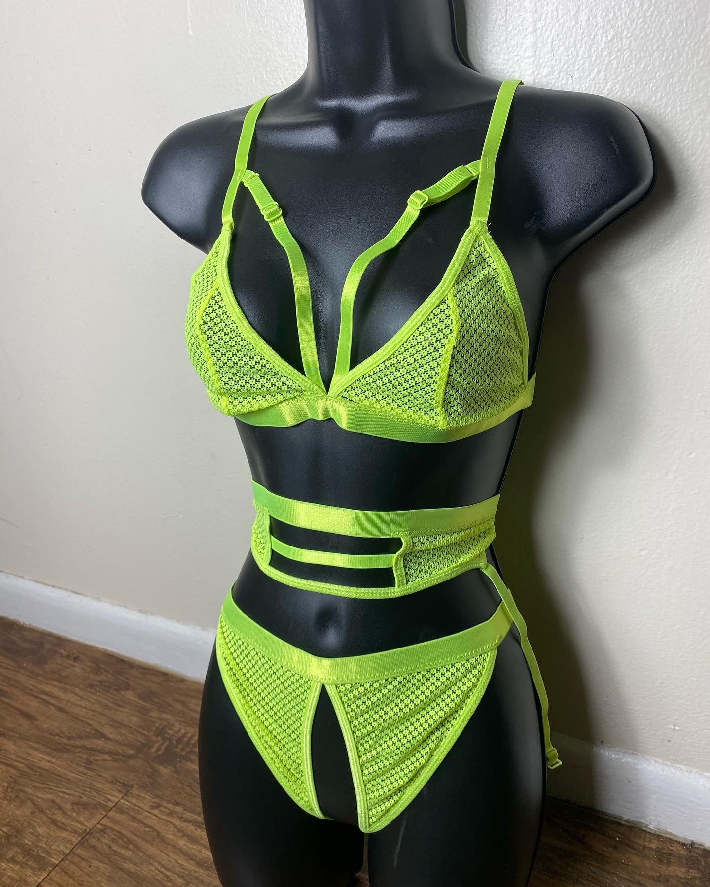 The Bare With Me P2 features an open crotch design and two piece lace, offering a secure and comfortable fit for all-day wear. Step into ultimate convenience and style with this must-have lingerie set.